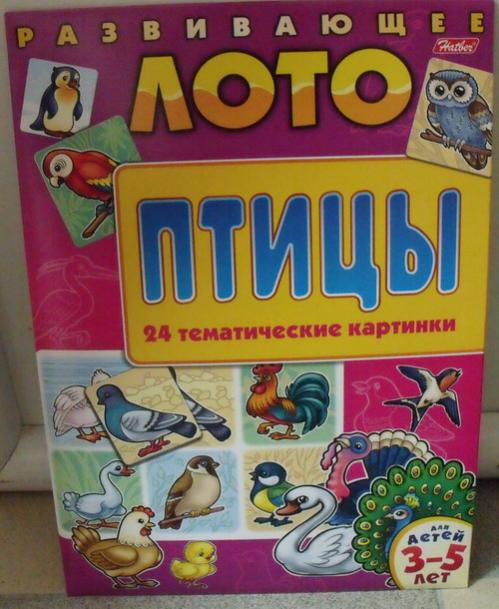 Лото - это замечательная увлекательная игра в которую могут играть от 2-х до 5-ти лет (Один ведущий, а четверо заполняют карточки). Суть игры более чем традиционна – выигрывает тот кто первым заполнит свои карточки, но в самом процессе игры ребёнок получает новые знания об окружающем мире. Развивающее лото поможет детям в игровой форме запомнить и закрепить знания об окружающем мире. Участники игры должны правильно закрыть картинки на больших картах соответствующими маленькими 24 карточками. 2$ Вложение 2161 Вложение 2162 Вложение 2163 Вложение 2164 |