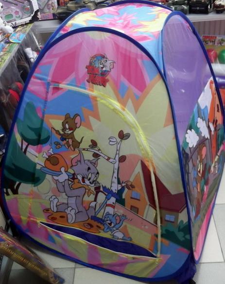 Палатка детская Том и Джерри имеет 1 вход на липучках и второй вход - поднимающуюся шторку.