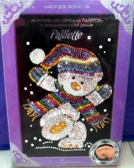 Картина-мозаика из пайеток в декорированной рамке. Набор для детского творчества.