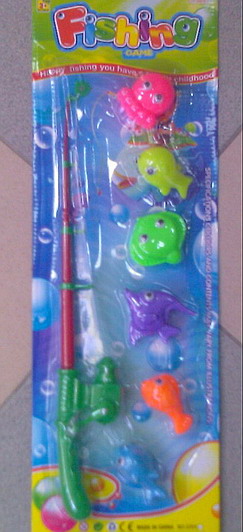 Детская рыбалка. Набор из удочки с магнитиком и 5 пластмассовых рыбок. Набираем в ванну или в ведро воды, и с помощью удочки ловим рыбок. Детям очень нравится такая игра. 3$