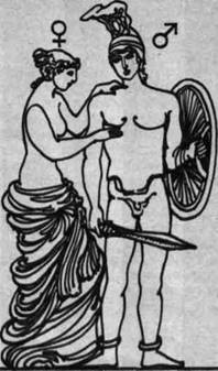 Наше понимание женственности и мужественности восходит к культуре древнейших времен. Я сталкиваюсь с этим в своей каждодневной работе. Естествоиспытатели и врачи для обозначения половой принадлежности используют знаки, которыми в Месопотамии пять тысяч лет назад обозначали небесные светила. В древности звезды отождествляли с богами. Греческая богиня Афродита, которую римляне позднее называли Венерой, была олицетворением любви и красоты, и ей выбрали нежно сияющую звезду, которую и назвали Венерой. Знак Венеры и женского пола. Другая звезда — точнее, планета — была красноватого цвета и напоминала кровь и пожары, поэтому древние римляне выбрали ее для бога войны Марса. В представлении древних римлян Марс был мужественным, непобедимым воином в сверкающей броне, обладающим несгибаемой волей. И знак планеты Марс стал и знаком мужского пола.