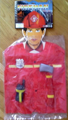 Костюм пожарника купили за 4 доллара, но он того не стоит, не качественная игрушка, разорвался как пакет ))