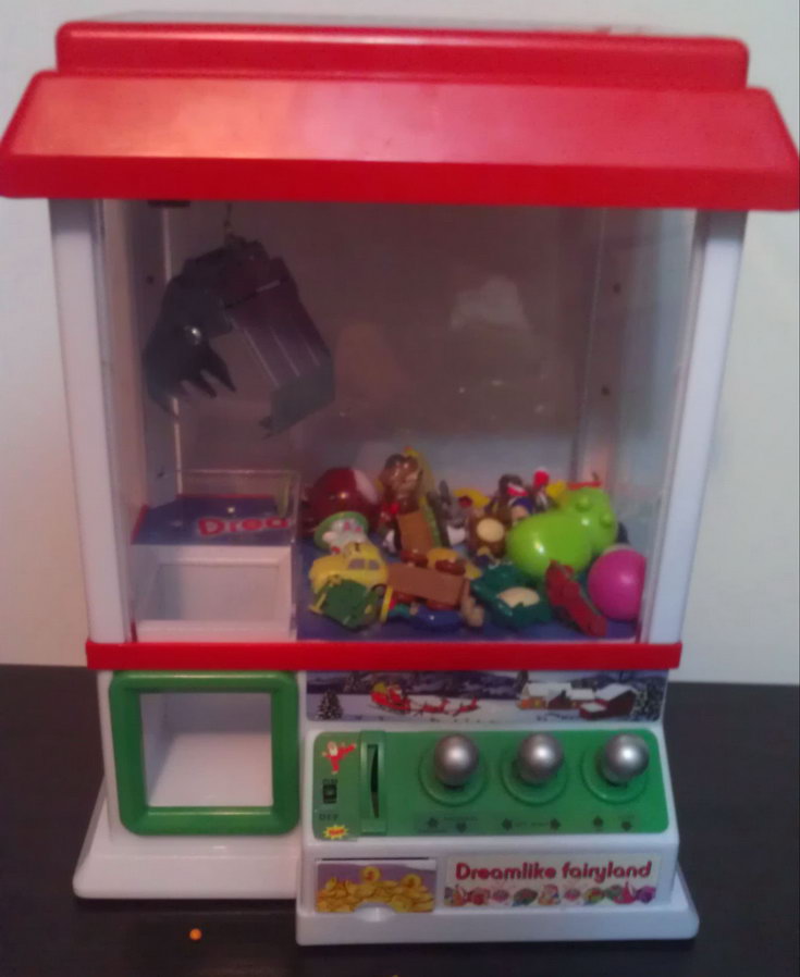 Детская игра "Автомат игрушек". Кинь монетку. Достань с помошью трех рчагов управления игрушку.