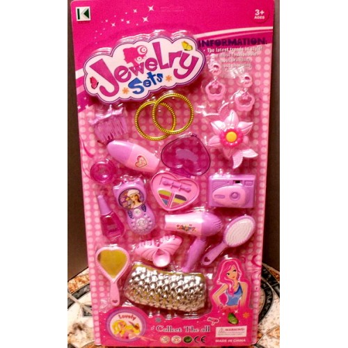 Набор маленькой принцессы -ювелирные изделия (jewelry sets), косметика. Для детей (девочек) от 3 лет. В набор входят такие игрушки как: фен, фотоаппарат, расческа,зеркальце, различные виды заколок, тушь для глаз, серьги. 7$