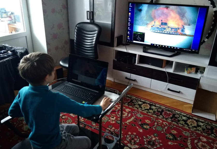 Фотография по теме. Сын играет в "танки онлайн" через ноутбук на большом ТВ. Кажется - что смотришь фильм, а не игра это.
