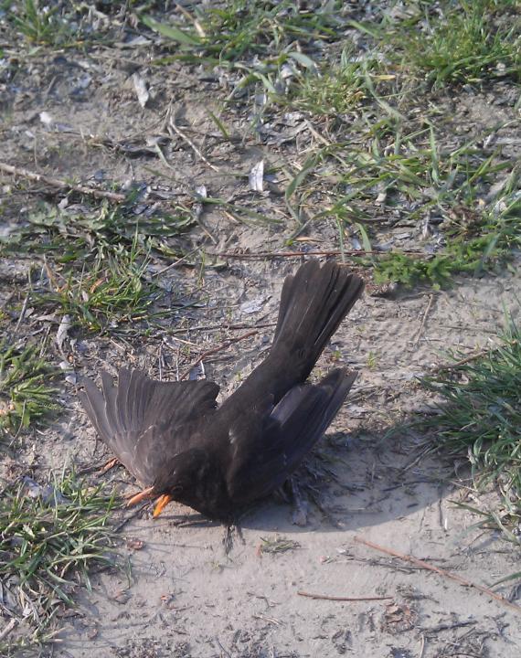 К нам на природе подлетела птичка, подпускала к себе на метр. Потом полетела к водоему, попила водички.