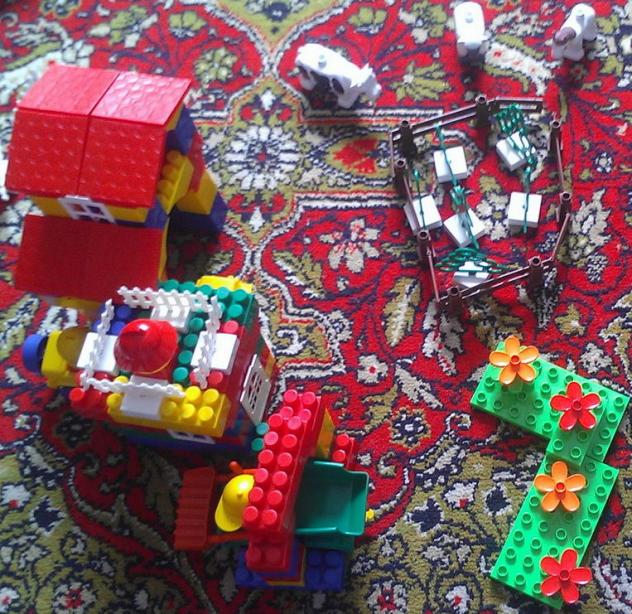 Вот какой лего собрал мой сын в почти 5 лет. Большой дом с фермой, авто.