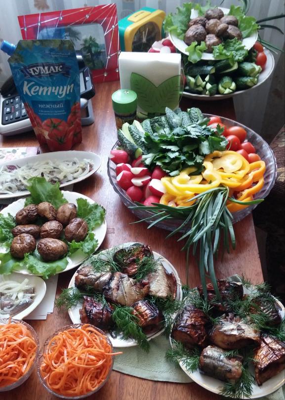 Вот фото последнего праздничного стола на день рождения. Еда на 4 человек.
