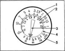 ФИЛ-11 (рис. 4.4) является источником высокоинтенсивного импульсного света, предназначенного для освещения объектов при фотографировании. Состоит из осветителя 1 и блока питания 2. Вложение 1814 Рис. 4.4. Импульсная лампа-вспышка: 1 — осветитель; 2 — блок питания Осветитель имеет пластмассовый корпус, в котором размещаются импульсная лампа с рефлектором и электрическая часть. На корпусе осветителя (рис. 4.5) имеется сигнальная лампочка 1, свечение которой указывает на готовность лампы к съемке. Чуть ниже находится кнопка 2 несинхронной вспышки. Нажатие на кнопку приводит к срабатыванию лампы (разрядке). Калькулятор 4 служит для определения нужного отверстия диафрагмы в зависимости от чувствительности пленки и расстояния от точки съемки до снимаемого объекта. Для установки осветителя на фотоаппарат служит ножка 3. Вложение 1815 Рис. 4.5 Осветитель лампы-вспышки: 1—сигнальная лампочка; 2 — кнопка несинхронной вспышки; 3 — ножка для установки осветителя на фотоаппарат; 4 — калькулятор Калькулятор (рис. 4.6) градуирован следующим образом: 1 — шкала расстояния (в метрах) до снимаемого объекта; 2 — шкала величин относительного отверстия объектива фотоаппарата; 3 — указательная стрелка поворачиваемой шкалы; 4 — шкала чувствительности пленки (в динах); 5 — шкала чувствительности пленки (в ед. ГОСТа). Вложение 1816 Рис. 4.6. Калькулятор лампы-вспышки: 1 — шкала расстояния; 2— шкала величины диафрагмы объектива; 3 — указательная стрелка; 4 — шкала чувствительности пленки в единицах ДШ и 5 — в единицах ГОСТа |