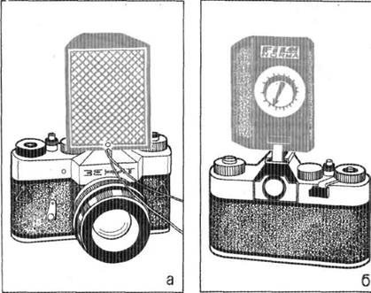 Для установки осветителя на корпус фотоаппарата типа «Зенит» и др. имеется специальная приставная площадка (рис. 4.7).