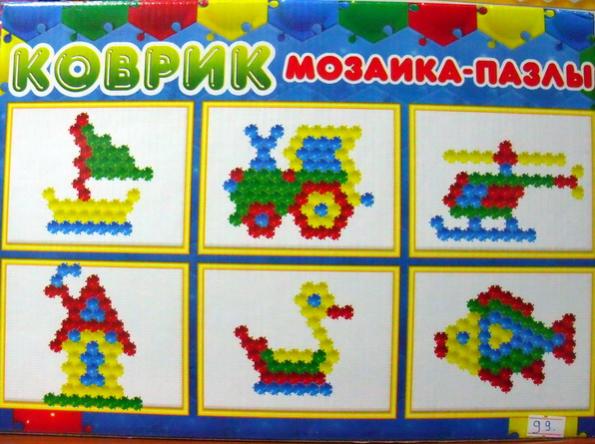 Коврик мозаика-пазлы. - 4 цвета мозаики - 80 днталей - длина ребра мозаики 40 мм Для детей от 3-х лет. Соберите кораблик, рыбку, машинку, вертолет, домик, утенка. 10$