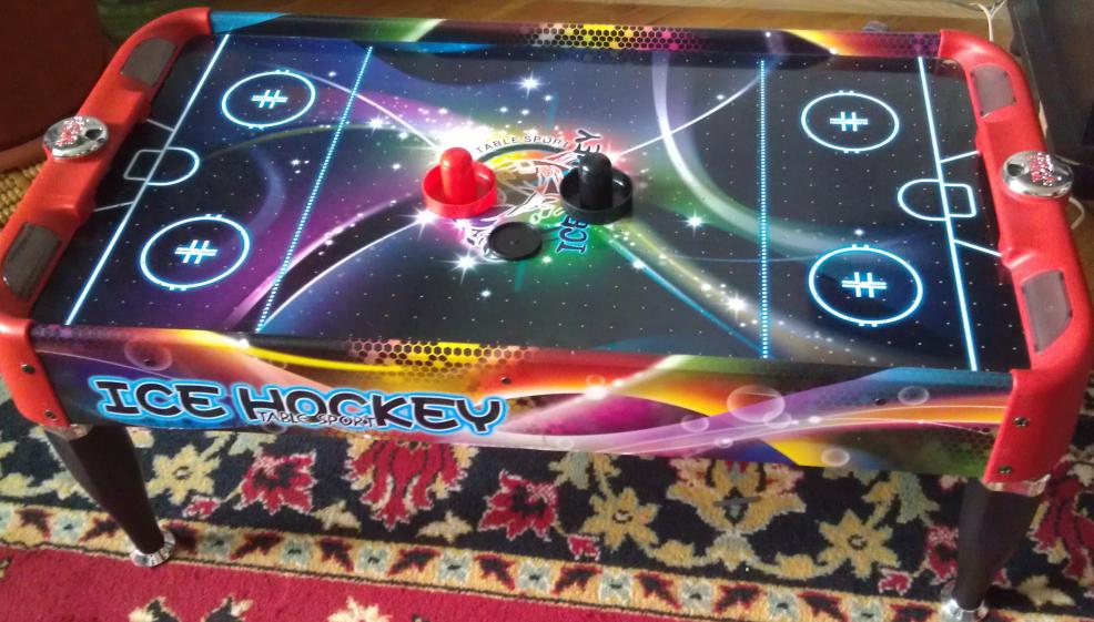 Новое увлечение ребенка - воздушный настольный аэрохоккей. Минус - питание только от батареек. Батареек не напасешься. Пришлось подключать к вентилятору напрямую неродной блок питания.