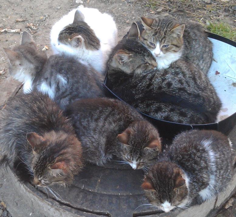 В холода кошечки кучкуются на канализационном люке...
