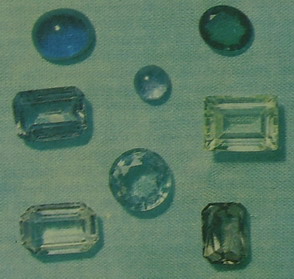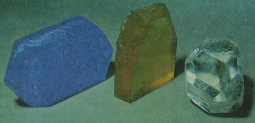 Минерал еремеевит встречается весьма редко. Он представляет собой борат алюминия - Аl [ВО3], кристаллизующийся в гексагональной синго-нии, открыт в пегматитах горы Соктуй в Забайкалье. В 1974 г. были найдены прозрачные красиво окрашенные кристаллы еремеевита в пегматитах Намибии и описаны Г. Банком и Г.В. Беккером (1977 г.) как ювелирный материал. Еремеевит встречается в виде призматических кристаллов зеленоватого, светло-василькового, темно-синего (Намибия) или бледно-коричневого цвета, иногда кристаллы бесцветные. Плотность 3,3 г/см3. Твердость 6,5. Показатели преломления: пo = 1,647-1,653, пе = 1,638-1,641; пo - пe = 0,008—0,013. Одноосный, отрицательный. 2V = 0-50°. По внешнему виду закономерно сросшиеся тройники еремеевита весьма напоминают кристаллы берилла, за которые они и были первоначально приняты. |
