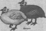 Содержание цесарок. Взрослых цесарок содержат на глубокой подстилке и в клетках в отапливаемых помещениях. В летнее время они лучше чувствуют себя в птичниках или под навесом с зелеными выгулами. Корма используют те же, что для кур и уток: зерно, гранулированный комбикорм и влажные мешанки. В состав мешанок включают морковь, зелень, корма животного происхождения и др. Во время яйцекладки держат на отгороженном участке у птичника. Отложив 20—30 яиц. цесарка их насиживает и после перерыва продолжает яйцекладку. Цесарят выращивают от месячного возраста в отапливаемых цыплятниках на глубокой подстилке, по 30 голов на 1 м2 пола при температуре воздуха 22— 24°С. Обогрев постепенно сокращают и в 30—40-дневном возрасте переводят на зеленые выгулы. Цесарят, особенно в первые недели жизни, нельзя выпускать на выгул с мокрой от дождя или росы травой. Кормить цесарят начинают, как только они обсохнут. Первым кормом служат простокваша, мелкодробленая кукуруза, пшеница, отруби, нежная резаная зелень. С. 10—15-го дня можно скармливать 3-4 раза.