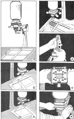 Вложение 1822 Рис. 7.30. Электрофотоглянцеватель На глянцевателе можно высушить фотографии, размещая их эмульсионной стороной наружу от пластины, а можно и отглянцевать, помещая наоборот. Порядок сушки (глянцевания) фотоотпечатков на глянцевателе следующий (рис. 7.31): 1. Включить фотоглянцеватель в сеть для нагрева (рис. 7.31,а). 2. Открыть замки полотна и снять хромированные пластинки (рис. 7.31,6). 3. Промыть хромированные стороны пластин спиртом (можно денатуратом). 4. При необходимости получить глянцевую поверхность фотоотпечатка последний накладывается на хромированные пластины эмульсией (изображением) вниз (рис. 7.31,в). 5. При сушке матовых фотоотпечатков или если глянец на их поверхности нежелателен, наложить отпечатки на хромированные поверхности эмульсией (изображением) вверх (рис. 7.31,г). 6. Резиновым валиком удалить оставшуюся воду с поверхности фотографий (рис. 7.31,д). 7. Установить хромированные пластины по обеим сторонам фотоглянцевателя, причем хромированные стороны пластин с фотографиями должны быть обращены к полотну (рис. 7.31,е). 8. Закрыть замки полотна (рис. 7.31,ж). 9. Когда начнется легкое потрескивание фотографий, замки полотна (через 2—3 мин) можно открыть. Сухие фотографии опадут с пластин сами (рис. 7.31,з). Вложение 1821 |