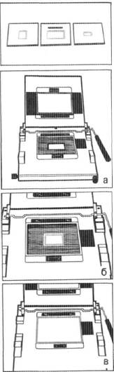 Создана универсальная рамка, позволяющая вести кадрирование негативов от 13X17 мм до 9X12 см и более. Подобная универсальность обеспечивается передвижением в горизонтальной и вертикальной плоскостях светозащитных полос (рис. 7.7).
