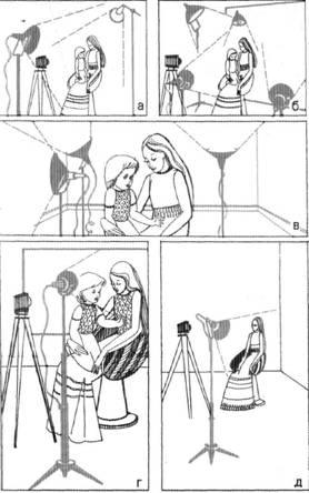 1. Фигура освещена двумя осветителями, расположенными под углом к портретируемому (рис. 4.38, а).
