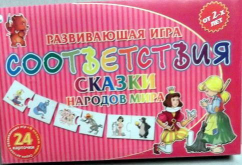 Развивающая игра Соответствия. Сказки народов мира. Для детей от 2 лет. В набор входит 24 карточки. Развивающая игра помогает формированию логического мышления, способствует развитию таких навыков и умений, как сравнение и классификация предметов. Игра устроена по принципу построения (собирания) пазлов.