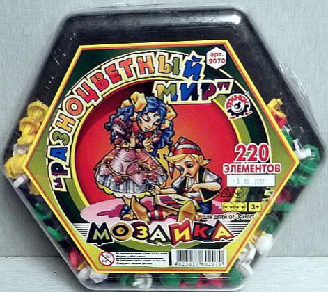 Мозаика Разноцветный мир. На 220 элементов.Шестигранная форма элементов. Размер доски: 22 на 22 на 3 см. Для детей от 3 лет. 5$