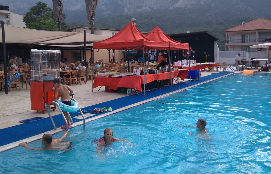 Смешной момент, в какой-то местный праздник расставили столы с товарами прямо у бассейна, а продавщица нервничала - что её товары намокнут ))
