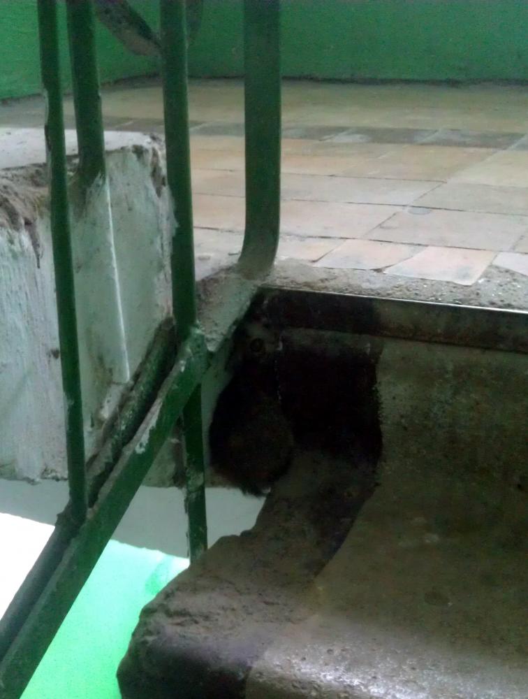 В подъезде сегодня увидел вот такого котенка - он прятался между этажами.