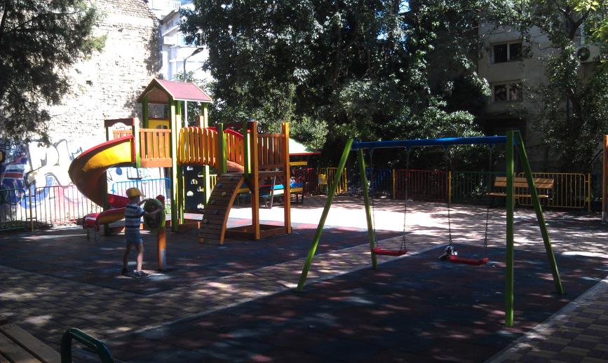 Детская площадка в Варне (Болгария). Обычный городской дворик.