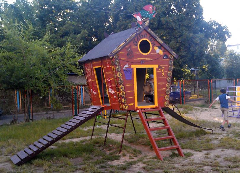На детской площадке сделали ремонт и поставили домик Бабы-Яги.