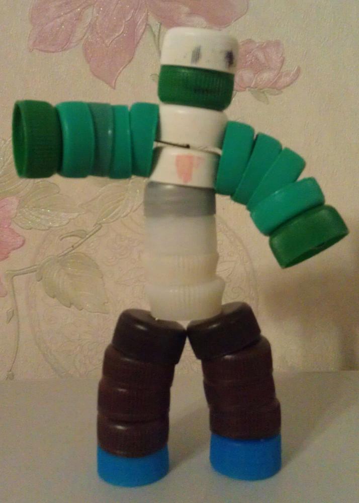 А сейчас сделали совместно с ребенком вот такого робота из крышек.