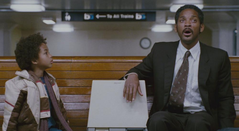 В погоне за счастьем. Уилл Смит с сыном - в главных ролях. Отличная драмма! Просто американская мечта.