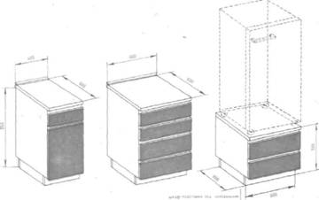 Предпочтительное направление в размещении оборудования (начиная с холодильника)— от входа к окну. В К. вытянутой формы все оборудование прямолинейно, без просветов размещают вдоль длинной стены: в других случаях возможна угловая и П-образная расстановка (при наличии угловых секций). Стационарное напольное оборудование для К. (плиты, рабочие столы, мойки) производят стандартных габаритов: высота рабочих плоскостей над полом — 850 мм, глубина (в т. ч. холодильников)— 600 мм. Холодильники удобно размещать на тумбах-подставках. Габариты некоторых стиральных машин, напр., «Вятка-автомат-12», с фронтальной загрузкой белья, позволяют встроить их в кухонную линию, а верхнюю их плоскость использовать как рабочую (вспомогательную). Во многих К. предусмотрены специальные розетки для подключения посудомоечных машин, электроплит, микроволновых печей. Вложение 1539Вложение 1540 |