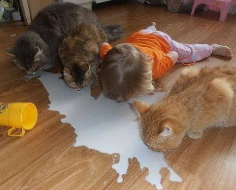 Молоко пролилось удачно ,все легли и лакают "смачно"...:-D