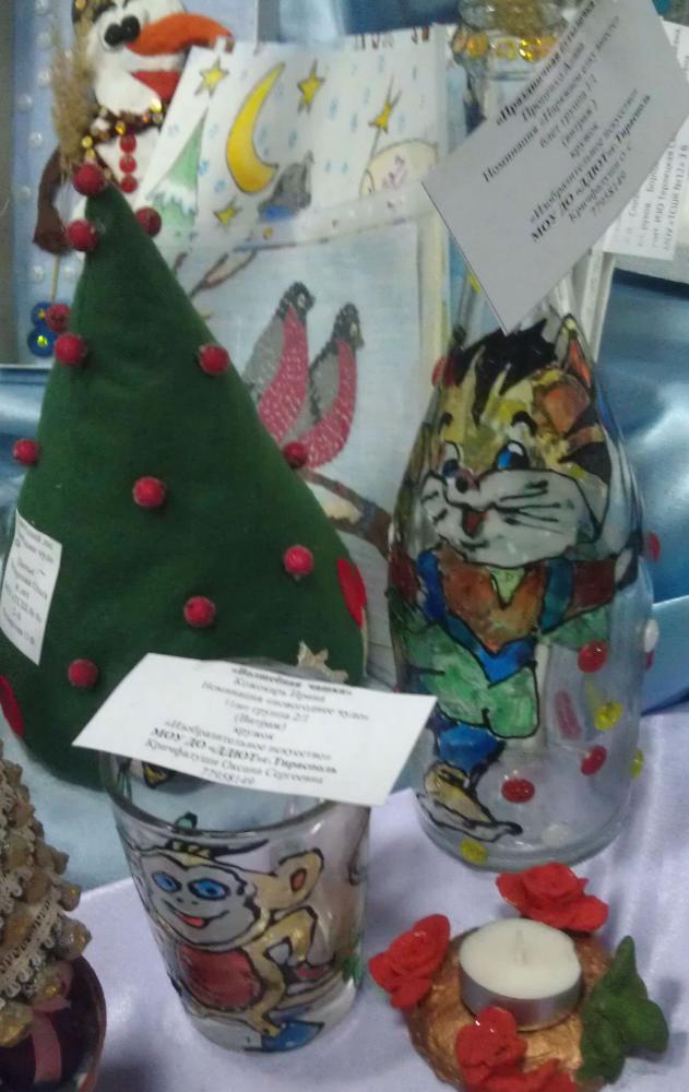 Несколько фотографий детских поделок в моём городе, которые были выставлены на новогодней выставке в местном дворце детского творчества.