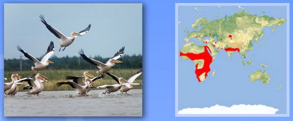 Ареал: гнездится в дельтах рек от Юго-Восточной Европы до Западной Монголии, зимует в Северо-Восточной Африке. Питание: крупная рыба 90 %, мелкая рыба 10 % рациона. Социальная жизнь: живут парами. Размеры тела, вес: самцы -175 см, 9 -15 кг; самки -148 см, 5-9 кг. Активность: дневные. Половозрелость: 3 - 4 года. Сезон размножения: март - апрель. Яйцекладка: 2 (изредка 3-4) яйца. Время насиживания: 29 - 36 дней. Продолжительность жизни: до 30 лет. Превосходно летает, плавает, но совсем не умеет нырять. Рыбу ловят сообща на мелководье. Выстроившись полукругом, они подгоняют её к берегу, при этом сильно хлопают крыльями по воде, где без труда её вылавливают, пользуясь своими кожаными мешками как сачками.. |