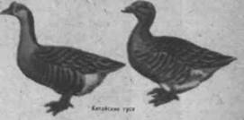 Выращивание гусят. В первую неделю их нельзя выпускать па сырую траву, в ветреную и дождливую погоду: 2 3 недельные гусята могут целый день находится на пастбище. В первые 40 дней гусят кормят 6—7 раз в день, затем постепенно переводят на четырехкратное кормление. Гуся кормят после того, как они обсохнут и обогреются: в первые 3 дня кормят 6—7 раз круто сваренными мелко нарубленными яйцами, перемешанными с творогом и комбикормом. Зелень дают с первого же дня в измельченном виде, 20—30-днев ному молодняку — увлажненные рассыпчатые мешанки из ячменной или овсяной крупы, пшеничных отрубей и вареного картофеля. С 3—4-й декады скармливают крупно дробленное и цельное зерно, а также зелень; дают вволю ракушки, высушенные толченые кости, гравий, древесный уголь. Откорм. Гусят начинают откармливать в августе, когда живая масса молодняка раннего вывода достигает 3,5—4 кг. Последние 10—15 дней откорма птицу не выпускают на пастбище и кормят зерновой смесью (лучше распаренным зерном) 3—4 раза в день — по 135 г зерна на 1 кг живой массы. При ускоренном откорме молодняк содержат в загонах, давая вволю зерна и зелени.