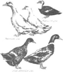 Утки Отличаются скороспелостью и интенсивностью роста; к 40—50 дням утята весят 3—3.5 кг. На 1 кг живой массы утят затрачивается 2,3—3 кг комбикорма. От взрослой утки с выводком (30 утят) к осени можно получить 120 кг мяса. За два цикла яйценоскости от одной утки-несушки можно получить 200 яиц. Наиболее распространенные породы угон — пекинская, серая украинская (серые, глинистые, белые) и черные белогрудые. Вложение 1533 |