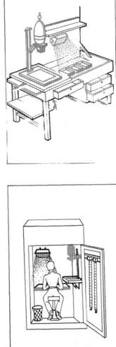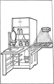 Рис. 5.5. Письменный стол, оборудованный для фоторабот Рис. 5.6. Организация фотолаборатории в шкафу |