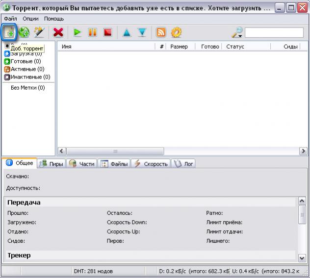 2. Нажимаем на иконку "добавить торрент".
