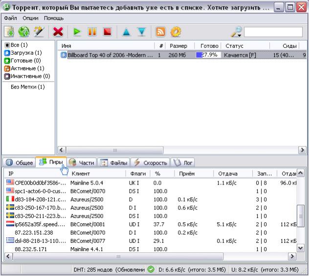 Клиент начинает поиск сидов и пиров, которые в данный момент качают и раздают вместе с вами данный файл/ы.