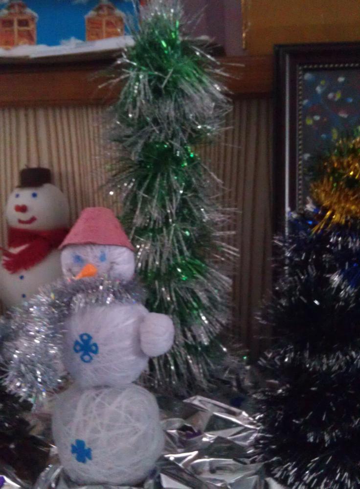 Снеговик и олень - детская поделка. Как Вам такое детское творчество?