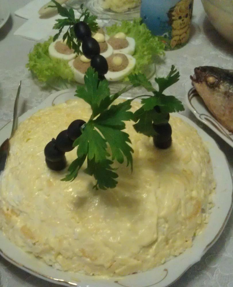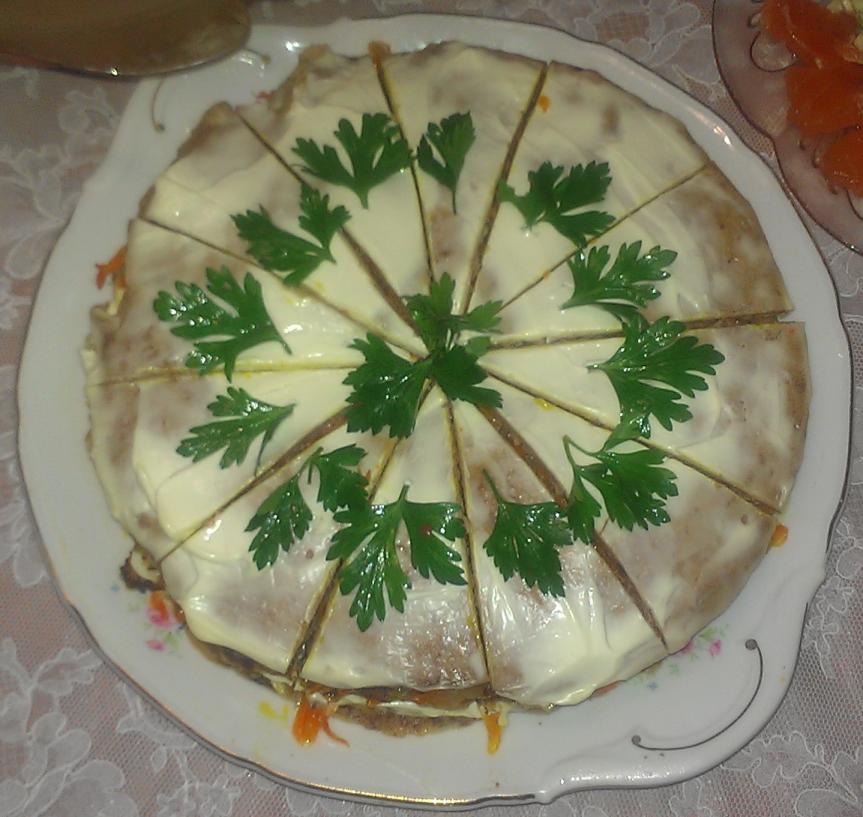 Делимся своими фото-отчетами и рецептами новогодних блюд. Решили сфотографировать наш праздничный новогодний стол. Вот несколько фото: Фаршированные яйца Рыбный салат Печеночный торт Салат подсолнух Запеченная утка |