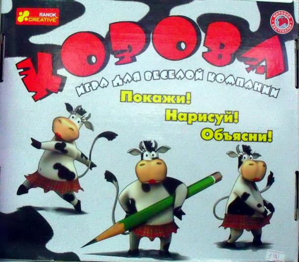 Игра Корова - для веселой компании! Правила игры: участникам игры предстоит показать, нарисовать или объяснить заданные слова. Побеждает та команда, которая наберёт больше баллов и первой дойдёт до финиша. Покажи, нарисуй, объясни! Размеры упаковки: 34 на 29 см.