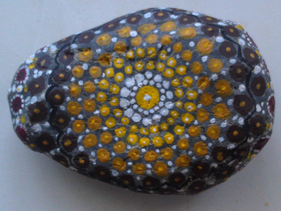 Камень, украшенный узорами. Поделка - на камень акварелью нарисован красивый узор.