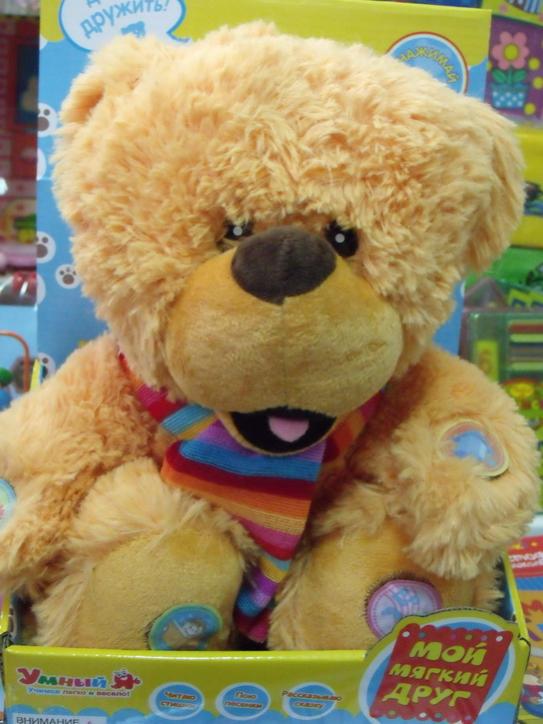 Медвежонок - российский аналог популярного среди деток повторялки Том Кэт. Нажимай на лапки, ножки и животик. Левая лапка- приветствие. Правая лапка - учим стишки. Левая пожка - рассказываю сказку Правая yожка - пою песенки Животик - песенка-алфавит Мой мягкий друг! Умный я - читаю стишки, пою песенку, рассказываю сказку . Давай дружить? 20$