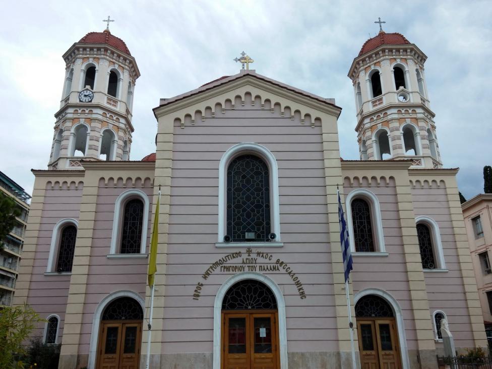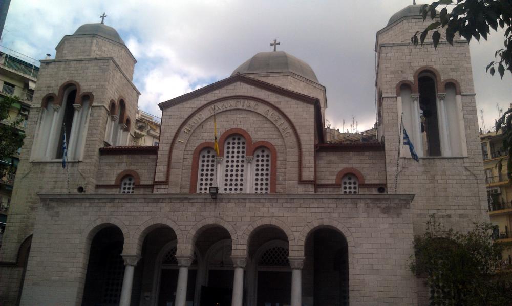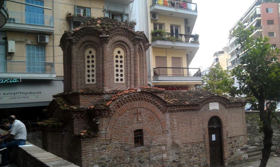 Церквушка прямо на улице, вокруг неё расположены всякие магазины. Таких мест в Солониках много.