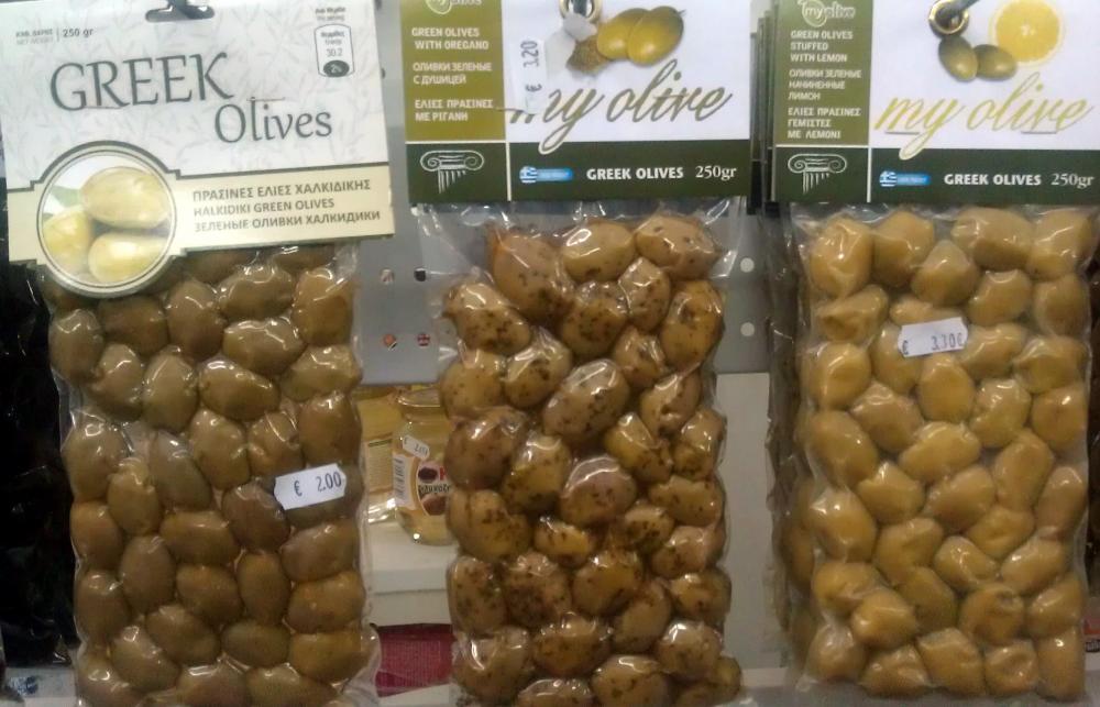 Греческие оливки 250 гр. за 2-3 евро.