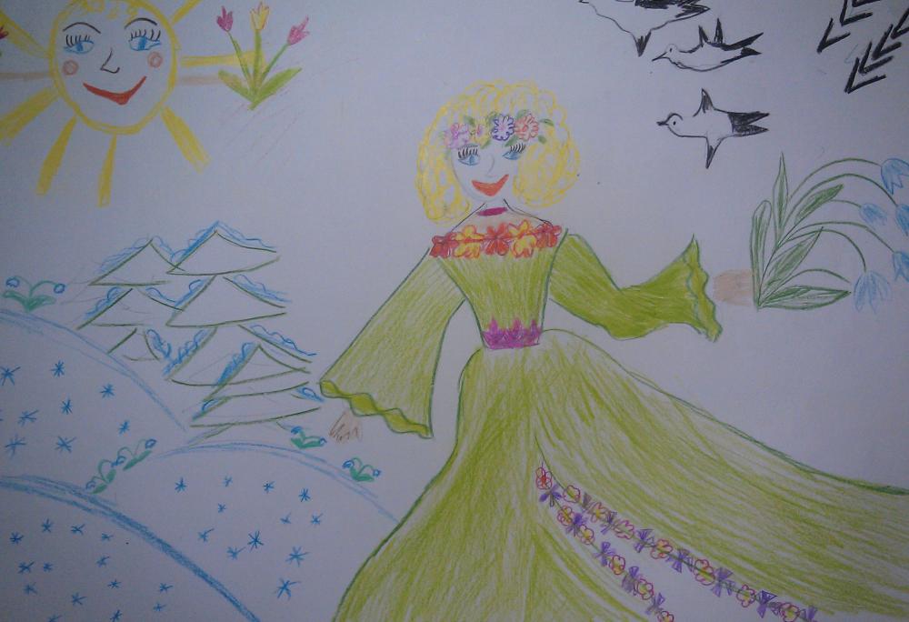 Девушка-весна детский рисунок. Девочка и дом - рисунок. Весна пришла - рисунок ребенка. |