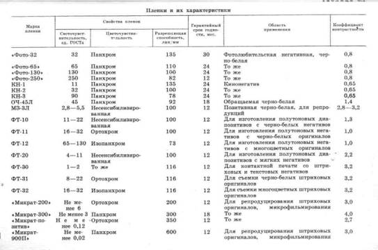 В таблице 3.1 приведен перечень фотопленок, наиболее часто используемых для любительских, научных и прикладных целей.