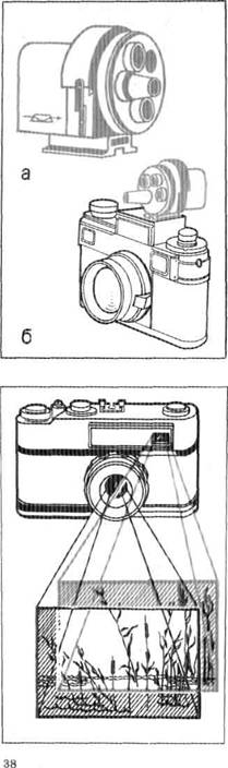 Поворачивая револьверный диск, фотограф видит границы любого из пяти кадров и в соответствии с композиционной задачей использует нужный объектив. Универсальный видоискатель крепится на верхней панели корпуса фотоаппарата (рис. 2.30, б).