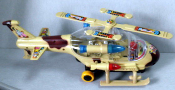 Вертолет детский игрушечный - светится, едет, крутится по полу, а так же издает различные звуки, 10 баксов.